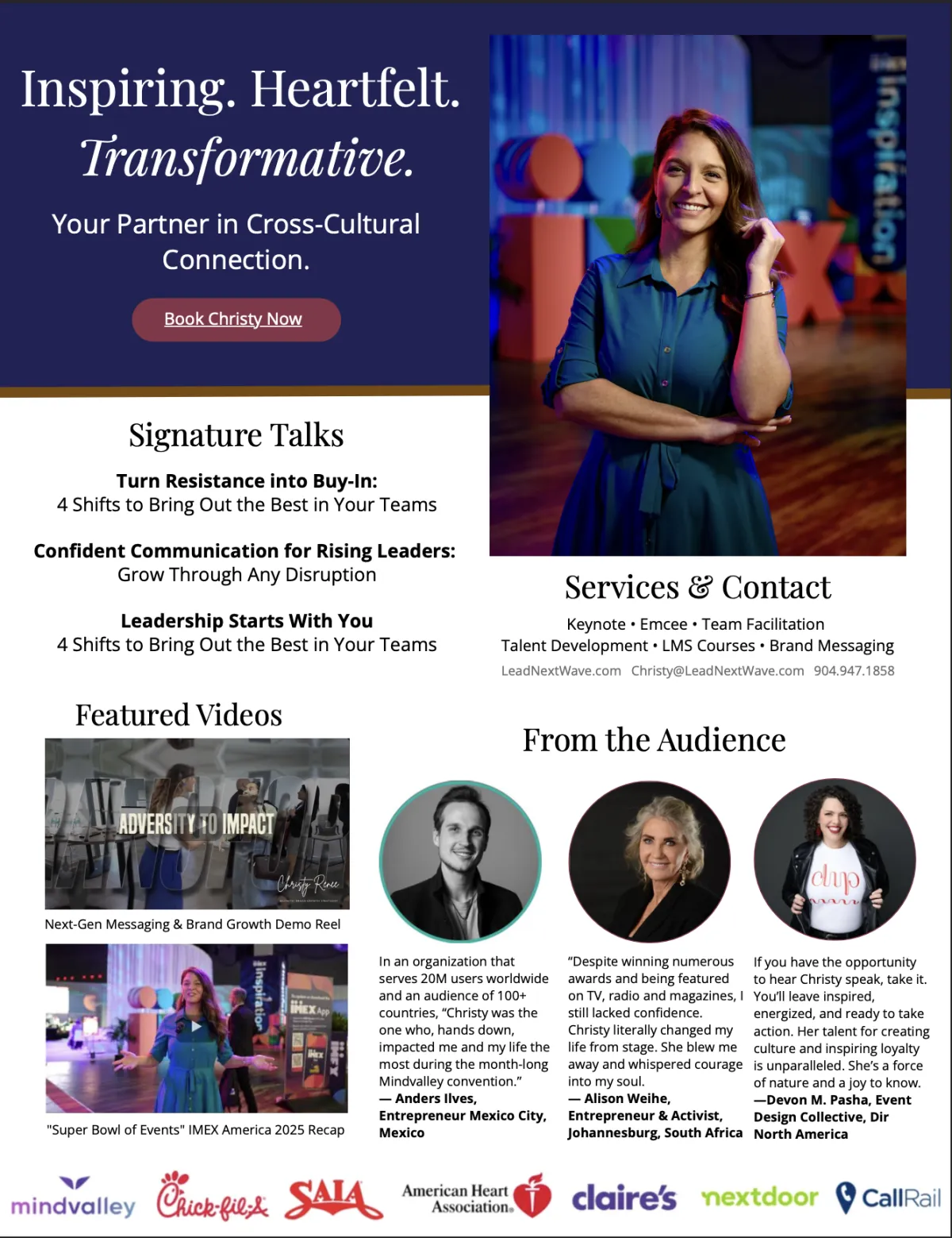 In this energizing keynote, you’ll learn 4 practical communication shifts that help leaders reduce friction, connect faster, and re-engage teams through real-world strategies you can apply immediately, even under pressure.